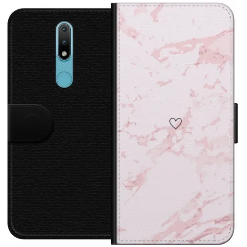 Lompakkokotelo Nokia 2.4-laitteelle, jossa on Roosa Sydän kuvio