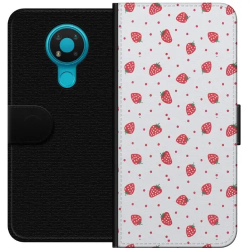 Lompakkokotelo Nokia 3.4-laitteelle, jossa on Mansikat kuvio
