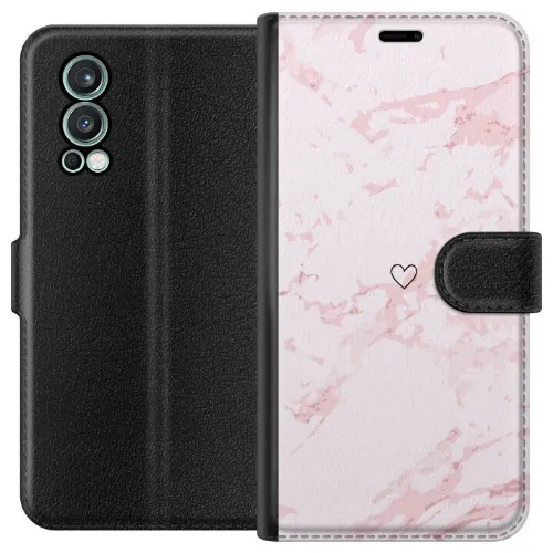 Lompakkokotelo OnePlus Nord 2 5G-laitteelle, jossa on Roosa Sydän kuvio