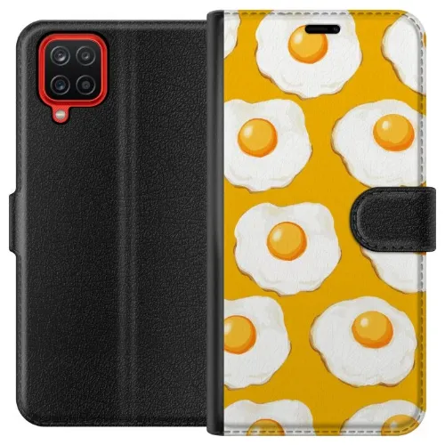 Lompakkokotelo Samsung Galaxy A12-laitteelle, jossa on Paistettu muna kuvio