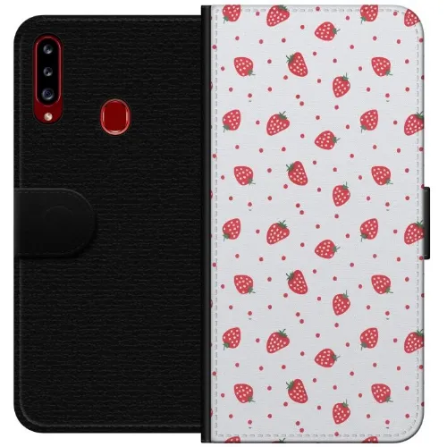 Lompakkokotelo Samsung Galaxy A20s-laitteelle, jossa on Mansikat kuvio