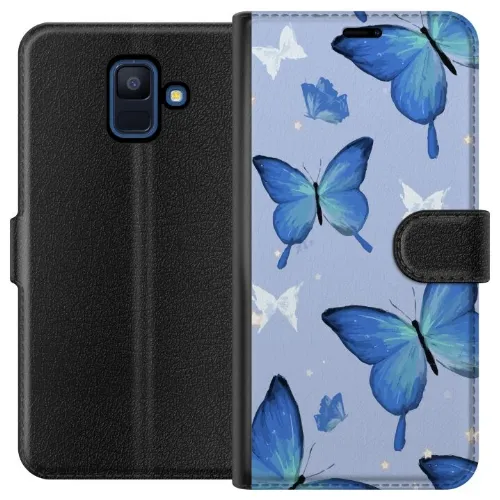 Lompakkokotelo Samsung Galaxy A6 (2018)-laitteelle, jossa on Sinisiä perhosia kuvio