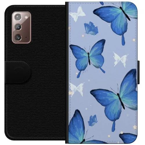 Lompakkokotelo Samsung Galaxy Note20-laitteelle, jossa on Sinisiä perhosia kuvio