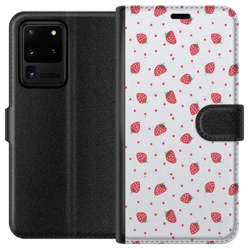 Lompakkokotelo Samsung Galaxy S20 Ultra-laitteelle, jossa on Mansikat kuvio