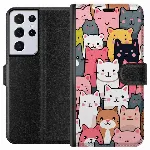 Lompakkokotelo Samsung Galaxy S21 Ultra 5G-laitteelle, jossa on Paistettu muna kuvio