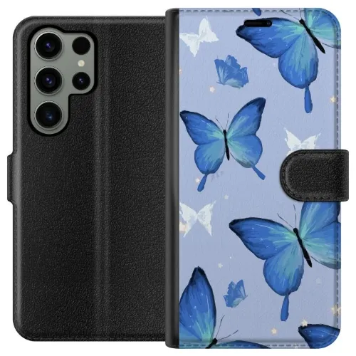 Lompakkokotelo Samsung Galaxy S23 Ultra-laitteelle, jossa on Sinisiä perhosia kuvio