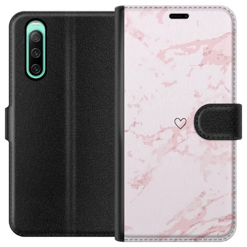 Lompakkokotelo Sony Xperia 10 IV-laitteelle, jossa on Roosa Sydän kuvio