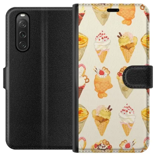 Lompakkokotelo Sony Xperia 10 V-laitteelle, jossa on Lasinen kuvio