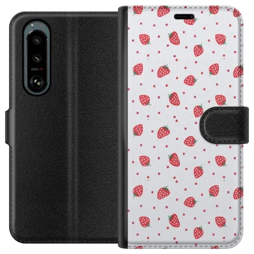 Lompakkokotelo Sony Xperia 5 III-laitteelle, jossa on Mansikat kuvio