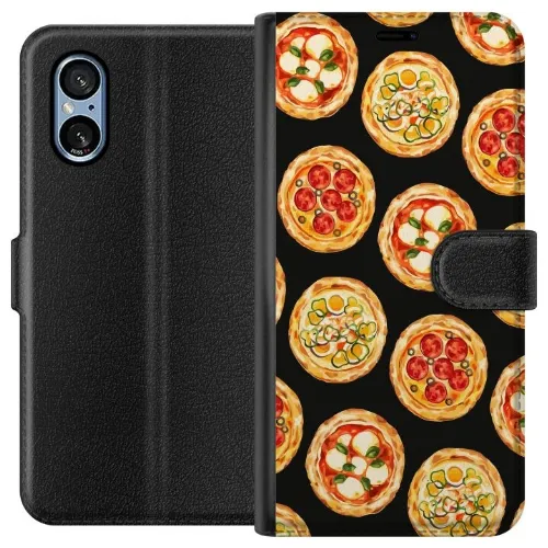 Lompakkokotelo Sony Xperia 5 V-laitteelle, jossa on Pizza kuvio