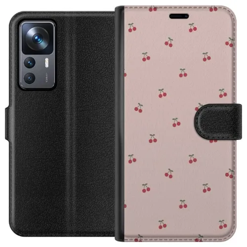 Lompakkokotelo Xiaomi 12T Pro-laitteelle, jossa on Kirsikka kuvio