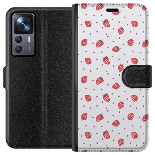 Lompakkokotelo Xiaomi 12T Pro-laitteelle, jossa on Mansikat kuvio