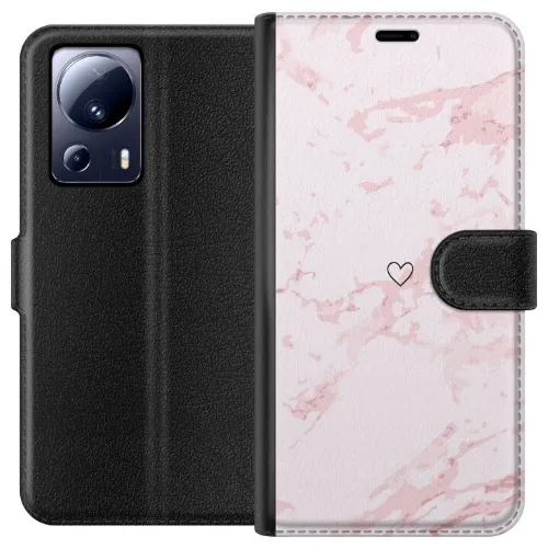 Lompakkokotelo Xiaomi 13 Lite-laitteelle, jossa on Roosa Sydän kuvio