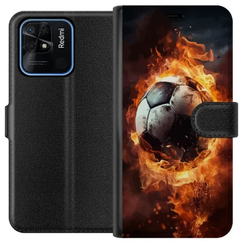 Lompakkokotelo Xiaomi Redmi 10C-laitteelle, jossa on Jalkapallo kuvio