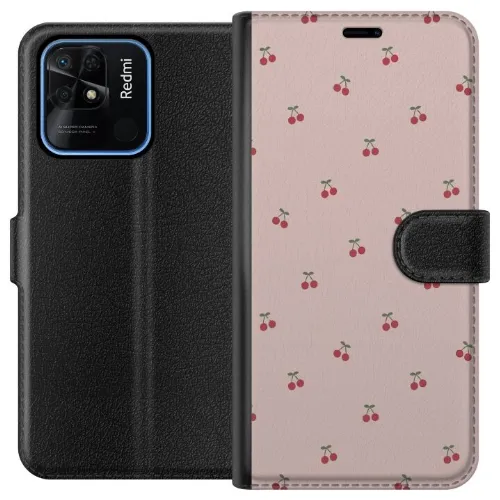 Lompakkokotelo Xiaomi Redmi 10C-laitteelle, jossa on Kirsikka kuvio