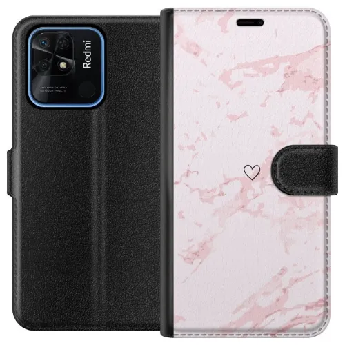 Lompakkokotelo Xiaomi Redmi 10C-laitteelle, jossa on Roosa Sydän kuvio