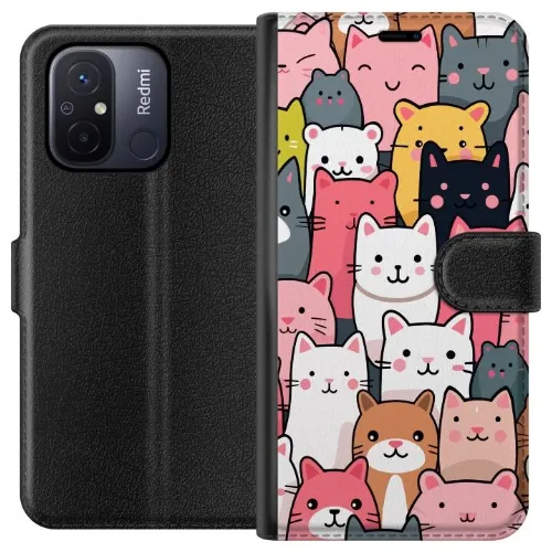Lompakkokotelo Xiaomi Redmi 12C-laitteelle, jossa on Kissan kuviointi kuvio