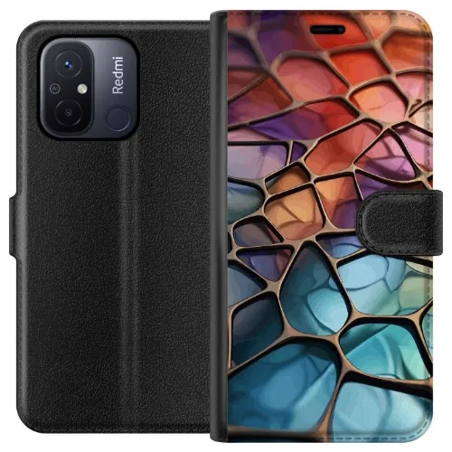 Lompakkokotelo Xiaomi Redmi 12C-laitteelle, jossa on Metallikuviointi kuvio