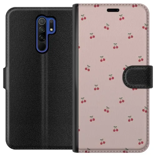 Lompakkokotelo Xiaomi Redmi 9-laitteelle, jossa on Kirsikka kuvio