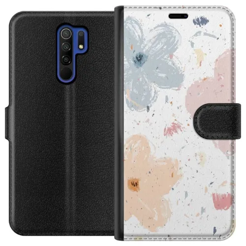 Lompakkokotelo Xiaomi Redmi 9-laitteelle, jossa on Kukat kuvio