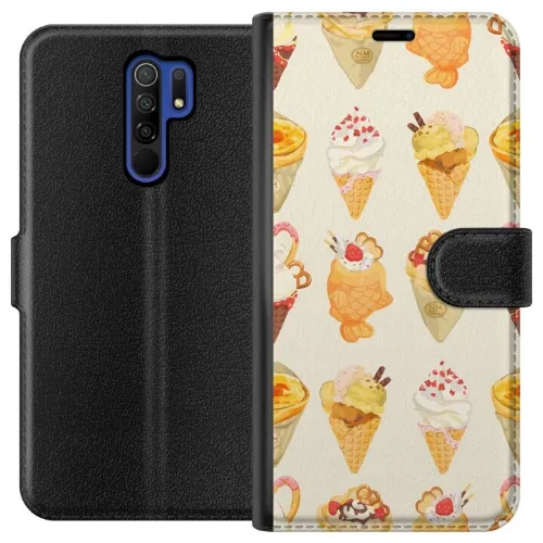 Lompakkokotelo Xiaomi Redmi 9-laitteelle, jossa on Lasinen kuvio