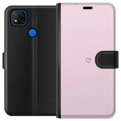 Lompakkokotelo Xiaomi Redmi 9C-laitteelle, jossa on Sydän kuvio