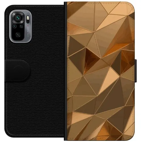 Lompakkokotelo Xiaomi Redmi Note 10S-laitteelle, jossa on 3D Kulta kuvio