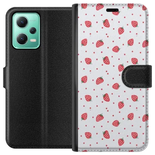Lompakkokotelo Xiaomi Redmi Note 12-laitteelle, jossa on Mansikat kuvio