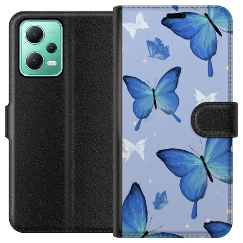 Lompakkokotelo Xiaomi Redmi Note 12-laitteelle, jossa on Sinisiä perhosia kuvio