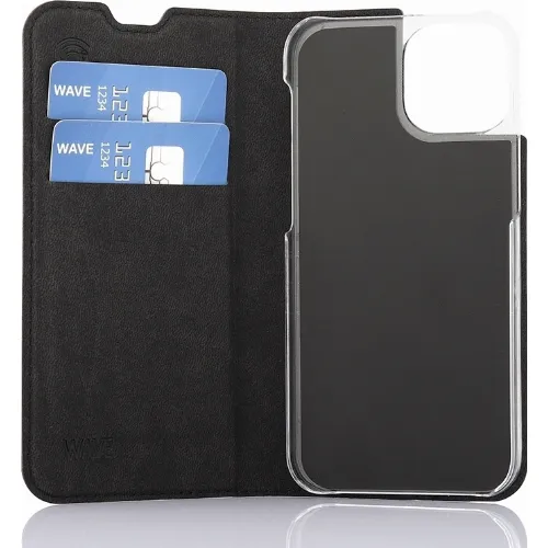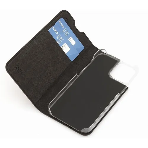 Wave BookCase -suojakotelo, iPhone 13 mini, musta