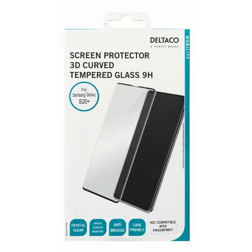 DELTACO näytönsuoja, Samsung Galaxy S20+, kaarevuus 3D, koko näyttö