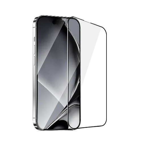 Karkaistua lasia oleva näytönsuoja metallikehyksellä, iPhone 16 Pro
