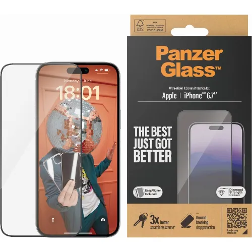 PanzerGlass Ultra-wide Fit with Aligner -suojalasi, iPhone 15 Plus