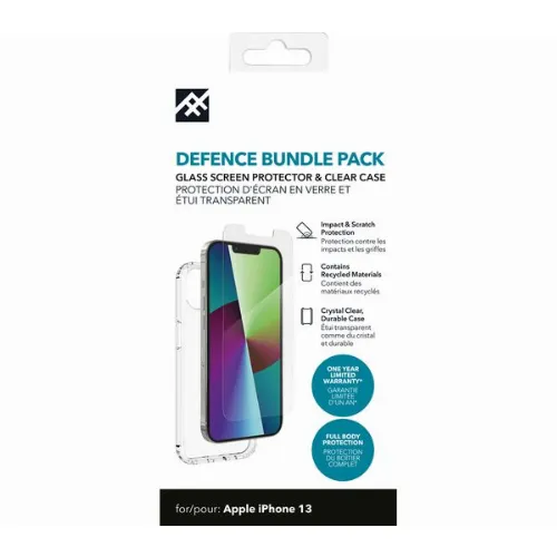Puolustus Bundle pack: Läpinäkyvä Mobile Case + näytönsuoja iPhone 13:lle