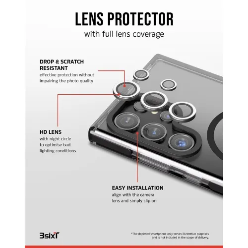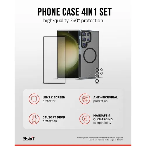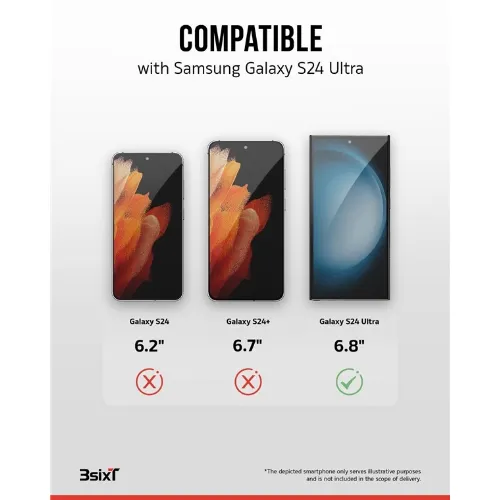 3SIXT 4in1 Protection Bundle mobilskal, skärmskydd, kameraskydd och stressfri applikator, kompatibel med Samsung Galaxy S24 Ultra, transparent