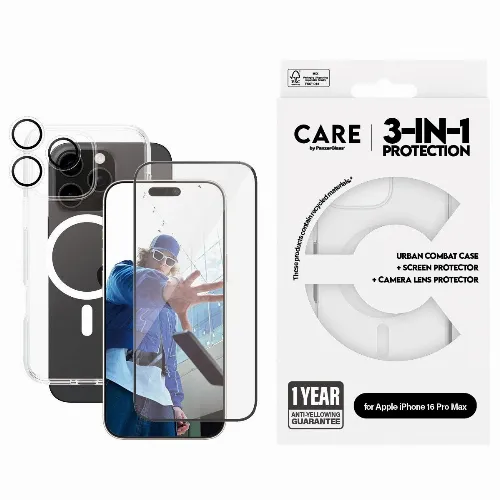 CARE by PanzerGlass - Lippulaiva 3-in-1 -paketti - iPhone 16 Pro Max