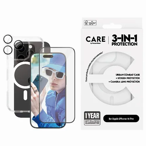 CARE by PanzerGlass - Lippulaiva 3-in-1 -paketti - iPhone 16 Pro