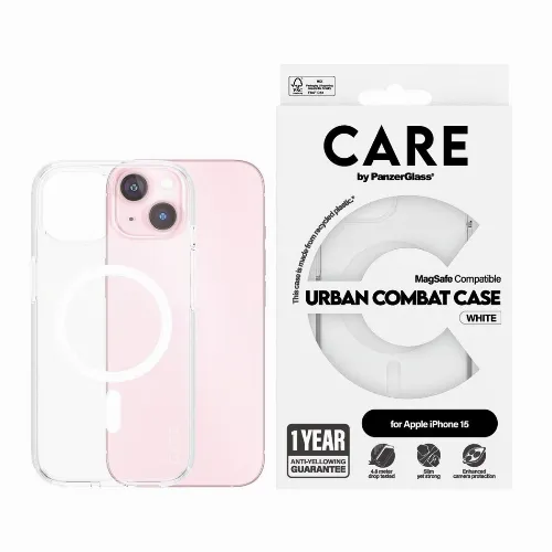 CARE by PanzerGlass - lippulaivakotelo läpinäkyvä Urban Combat w. valkoinen MagSafe - iPhone 15