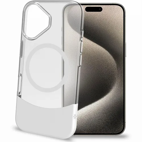 Celly Magdual MagSafe-kompatibelt skal iPhone 16 Vit + Transparent