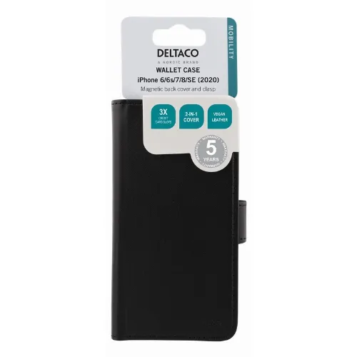 DELTACO lompakkokotelo iPhone 6/6s/7/8/SE (2020/2022), magn.kuori