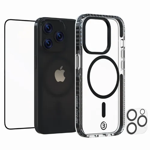 Impact Zero mobilskal 3in1-set kompatibel med Apple iPhone 15 Pro Max, transparent
