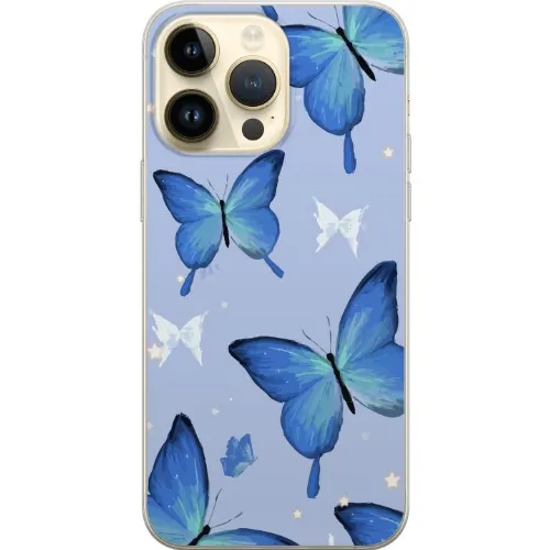 Kännykkäkuori Apple iPhone 15 Pro Max-laitteelle, jossa on Sinisiä perhosia kuvio