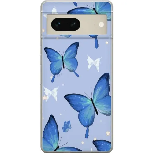 Kännykkäkuori Google Pixel 7-laitteelle, jossa on Sinisiä perhosia kuvio