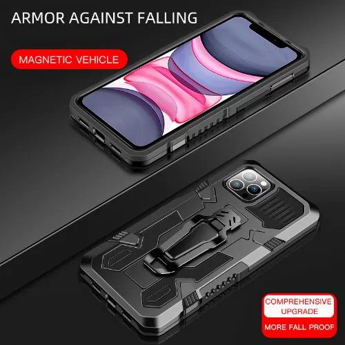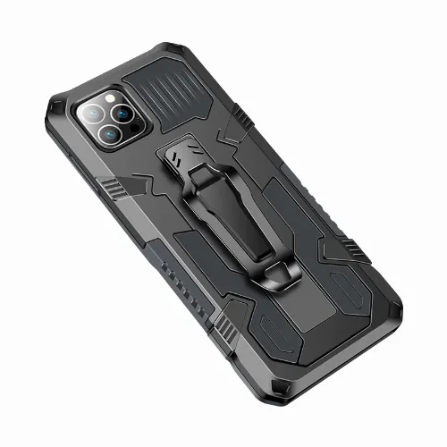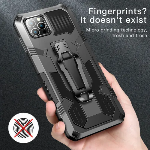 Kestävä kotelo jalustalla iPhone 13:lle, musta