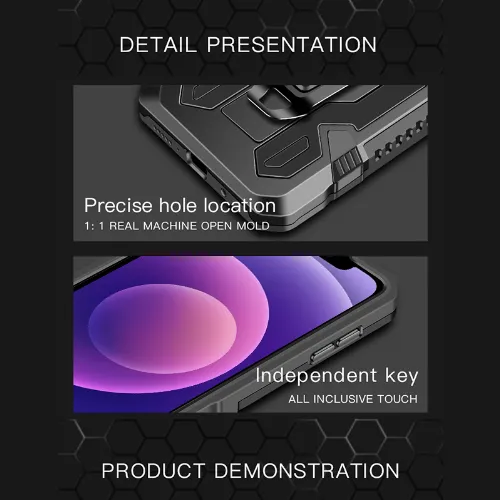 Kestävä kotelo jalustalla iPhone 13 Pro:lle, musta