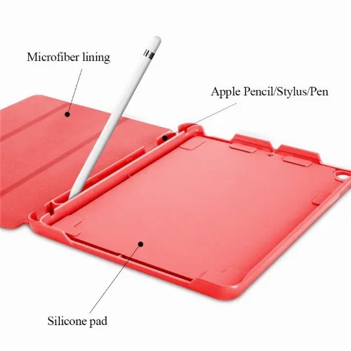 Kotelo, jossa säilytystila, USB-kaapeli Apple iPad 9.7" 2017, 2018, punainen