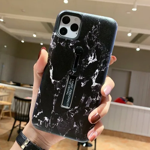 Muotikotelo sormipidikkeellä - iPhone 12 Mini, musta marmori