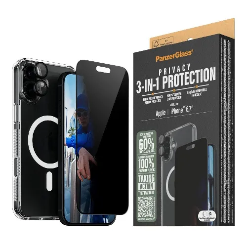 PanzerGlass iPhone 16 Plus 6.7'' 3-in-1 Privacy Protect Bundle -paketti