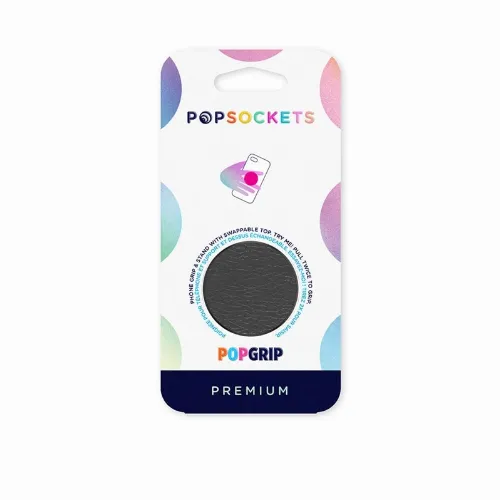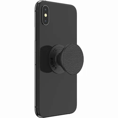 PopSockets Pebbled Vegan Leather Black Irrotettava Grip Telinetoiminnolla Premium