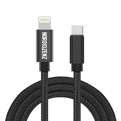 NORDIQZENZ USB-C ja Lightning tekstiilikaapeli, 1m, musta
